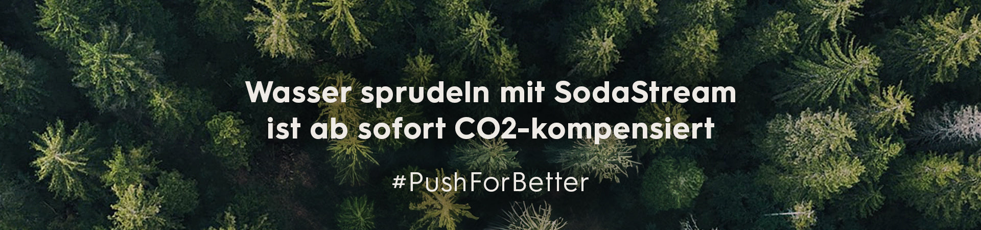 Alle reden über den Klimawandel. Wir handeln. Im Rahmen unserer Markenkampagne #PushForBetter kompensieren wir 115 Prozent des CO2-Ausstoss unserer 60-Liter-SodaStream-Zylinder. Ausserdem unterstützen wir zwei Klimaschutzprojekte in der Schweiz und sensibilisieren unsere Kundinnen und Kunden für Nachhaltigkeit.