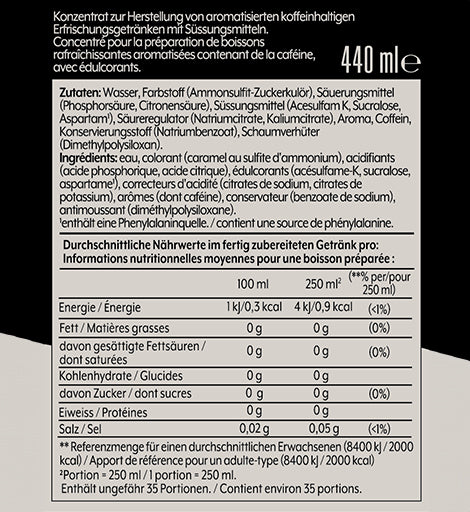 Inhalt: 440 ml Getränkesirup, ausreichend für 9 Liter Fertiggetränk