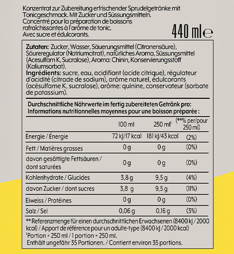 Inhalt: 440 ml Getränkesirup, ausreichend für 9 Liter Fertiggetränk